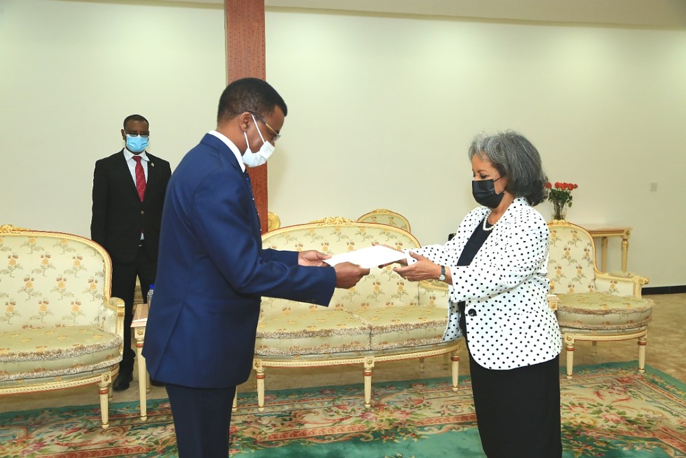 Mheshimiwa Innocent Eugene Shiyo, Balozi wa Tanzania nchini Ethiopia na Mwakilishi wa Kudumu katika Umoja wa Afrika na Kamisheni ya Umoja wa Mataifa ya Uchumi Afrika (UNECA) amewasilisha Hati za Utambulisho leo tarehe 5 Januari, 2022 kwa Mheshimiwa Sahle- Work Zewde, Rais wa Jamhuri ya Kidemokrasia ya Shirikisho la Ethiopia.