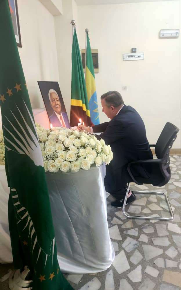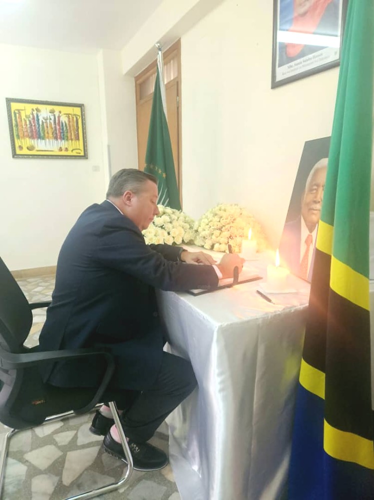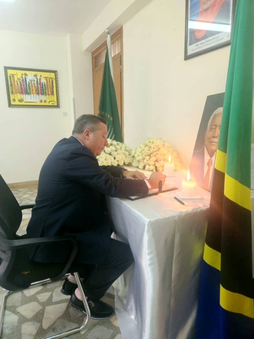 Mhe. Michael P. Murphy, KM, Balozi wa Malta na Mwakilishi wa Kudumu wa kwenye Umoja wa Afrika akisaini kitabu cha maombolezo kufuatia kifo cha Alhaj Ali Hassan Mwinyi, aliyekuwa Rais wa awamu ya Pili wa Jamhuri ya Muungano wa Tanzania.