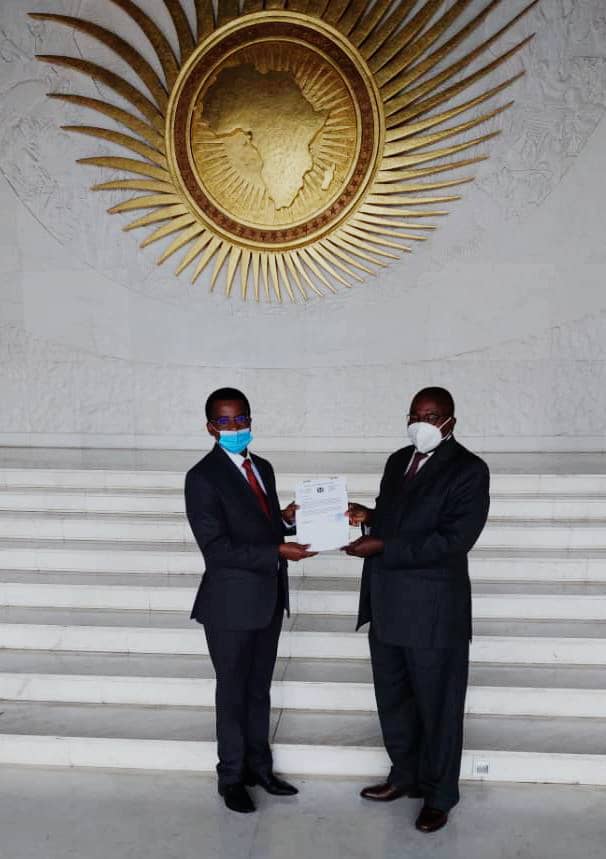 Balozi Shiyo amewasilisha hati hiyo kwa Mhe. Balozi Albert Muchanga, Kamishna wa masuala ya Uchumi, Biashara, Viwanda na Madini wa Umoja wa Afrika ambaye ameipokea kwa niaba ya Mhe. Moussa Faki Mahamat, Mwenyekiti wa Kamisheni ya Umoja wa Afrika.