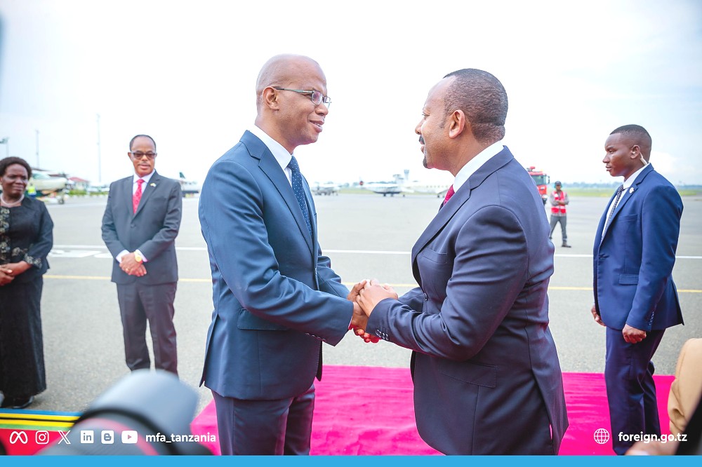 Mara baada ya kuwasili katika Uwanja wa Ndege wa Kimataifa wa Julius Nyerere, Mhe. Waziri Mkuu Abiy amepokelewa na Waziri wa Mambo ya Nje na Ushirikiano wa Afrika Mashariki, Mhe. January Makamba.