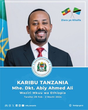 Mhe. Dkt. Abiy atapokelewa rasmi na mwenyeji wake Rais wa Jamhuri ya Muungano wa Tanzania, Mhe. Dkt. Samia Suluhu Hassan, Ikulu jijini Dar es Salaam tarehe 01 Machi 2024.